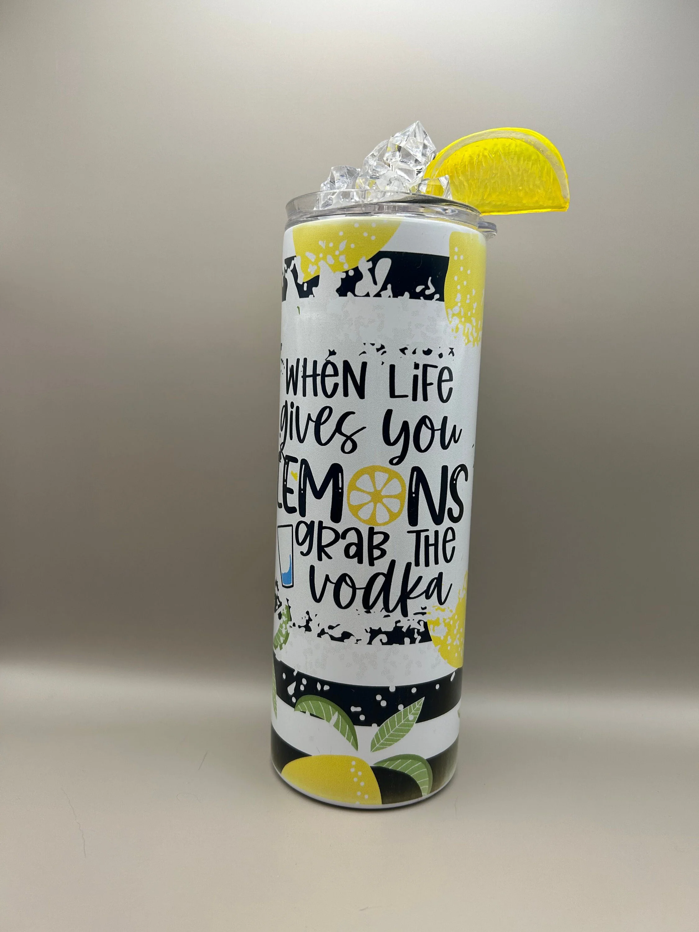 Shop › Lemons tumbler Image 1 of 1 Lemons tumbler $35.00 When life gives you lemons tumbler with custom lid. Add To Cart Added! When life gives you lemons tumbler with custom lid.